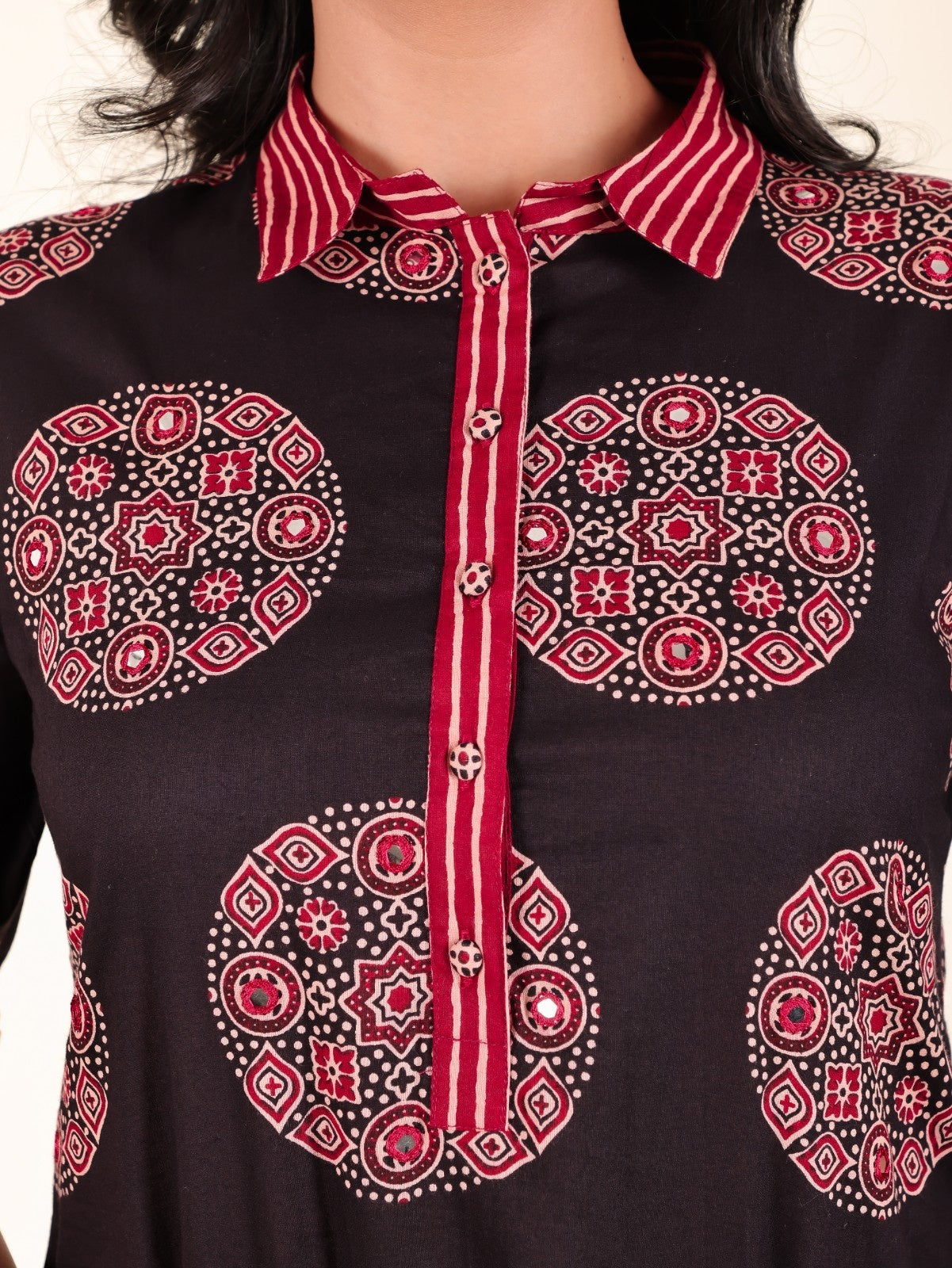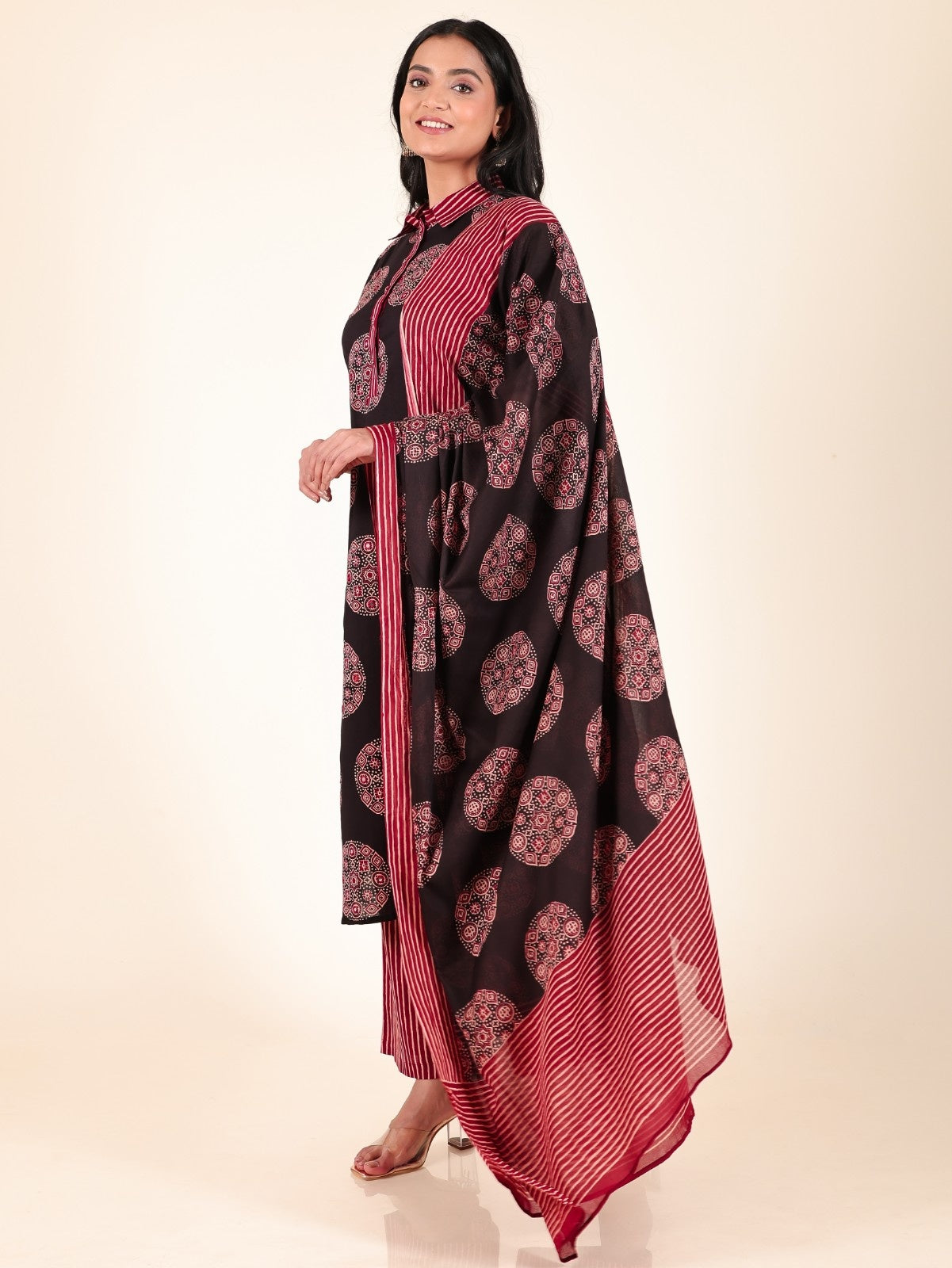 Color: Black||Fabric: Cotton||Type: Pathani||Print: Ajrakh