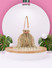 Peach-coloured and gold-toned embellished tasselled potli clutches