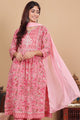Dhiyona VA Women'sPink Floral Printed Pure Cotton Kurta with Trousers & With Dupatta