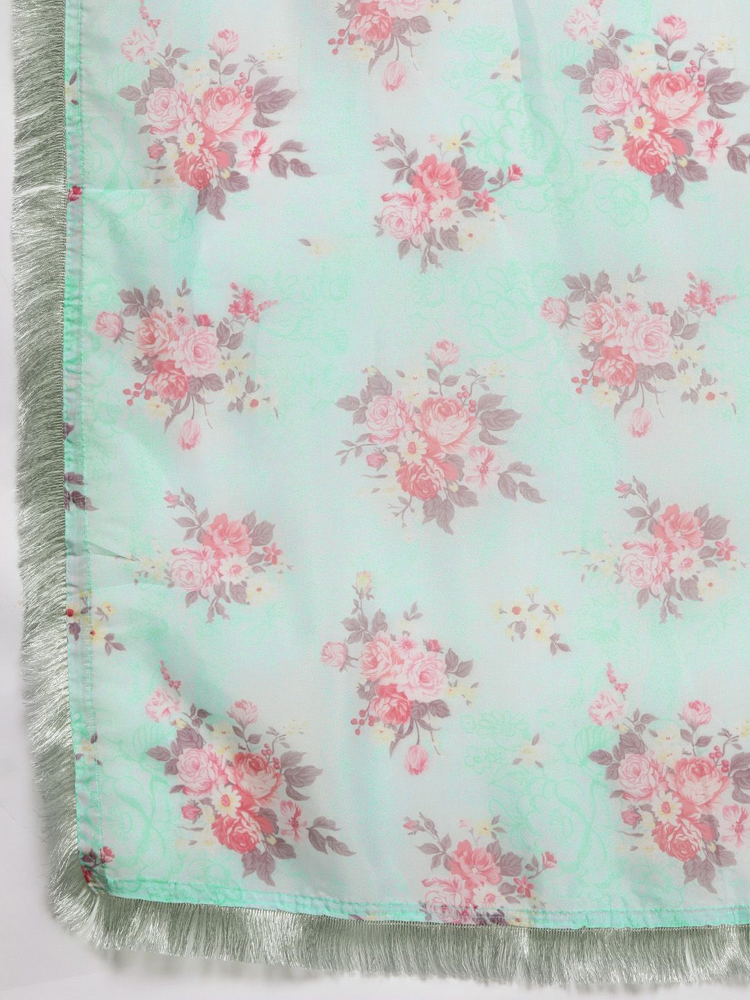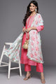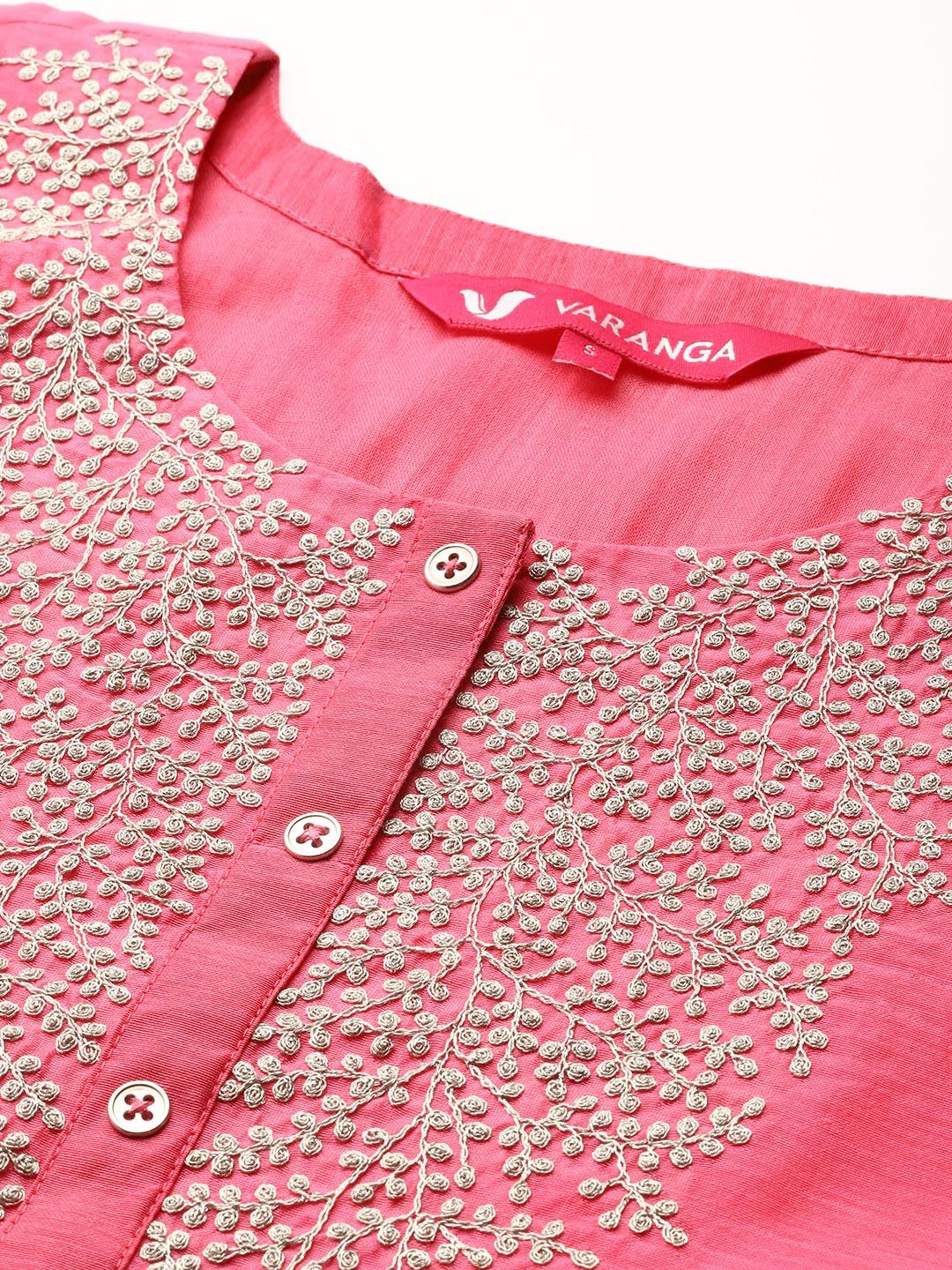 Dhiyona VA Women'sPink & Green Yoke Design Chanderi Silk Kurta with Trousers & With Dupatta