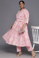 Dhiyona VA Women'sPlus Size Floral Printed Angrakha Gotta Patti Pure Cotton Kurta with Trousers