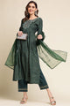 Green printed Kurta with Trousers with dupatta