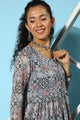 Dhiyona VA Women'sPrinted Silk Georgette Kurta with Trousers