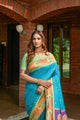 Dhiyona GR Women's Priyanka Cyan Blue Zari Paithani Silk Saree