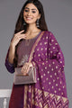Dhiyona VA Women'sPurple Geometric Woven Design Thread Work Jacquard Kurta with Trousers & Dupatta