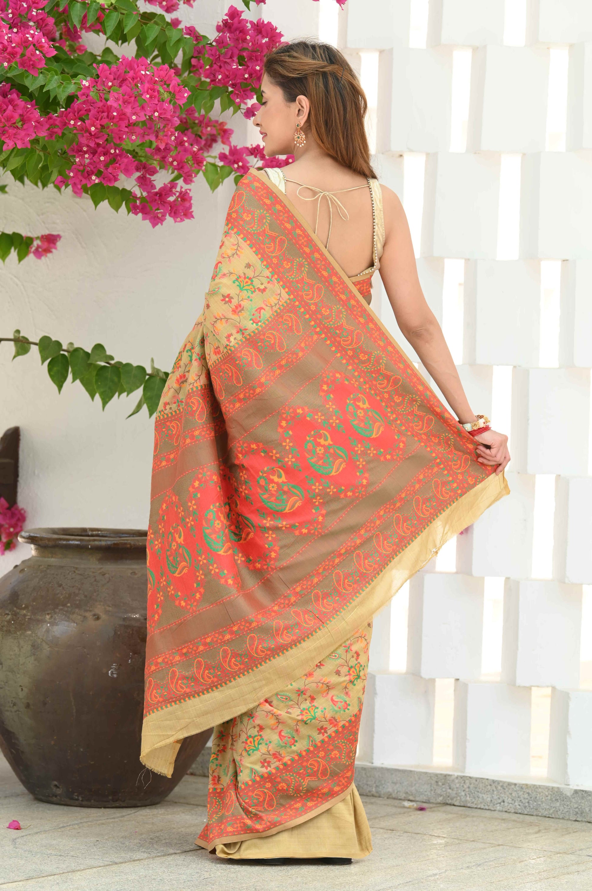 Dhiyona GR Women's Yashodha Hazelnut Beige Jamewar Kashmiri Soft Modal Silk Saree
