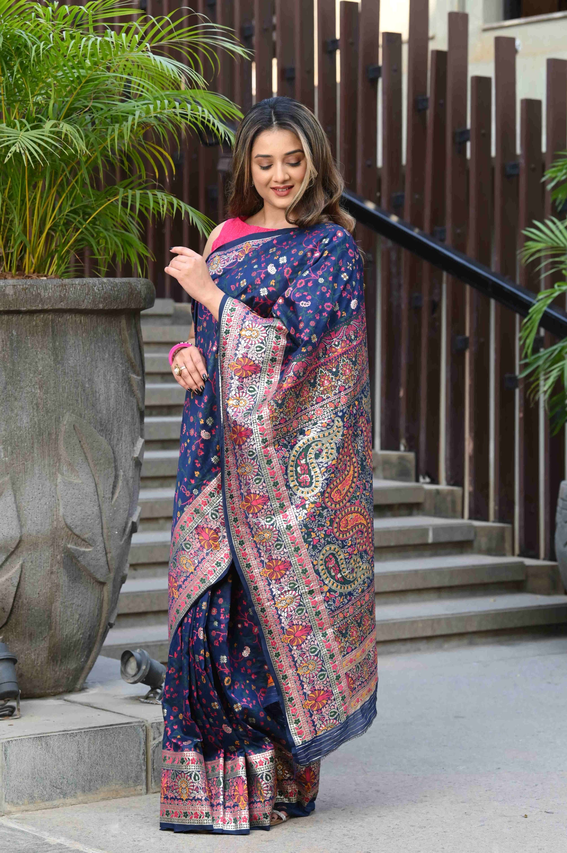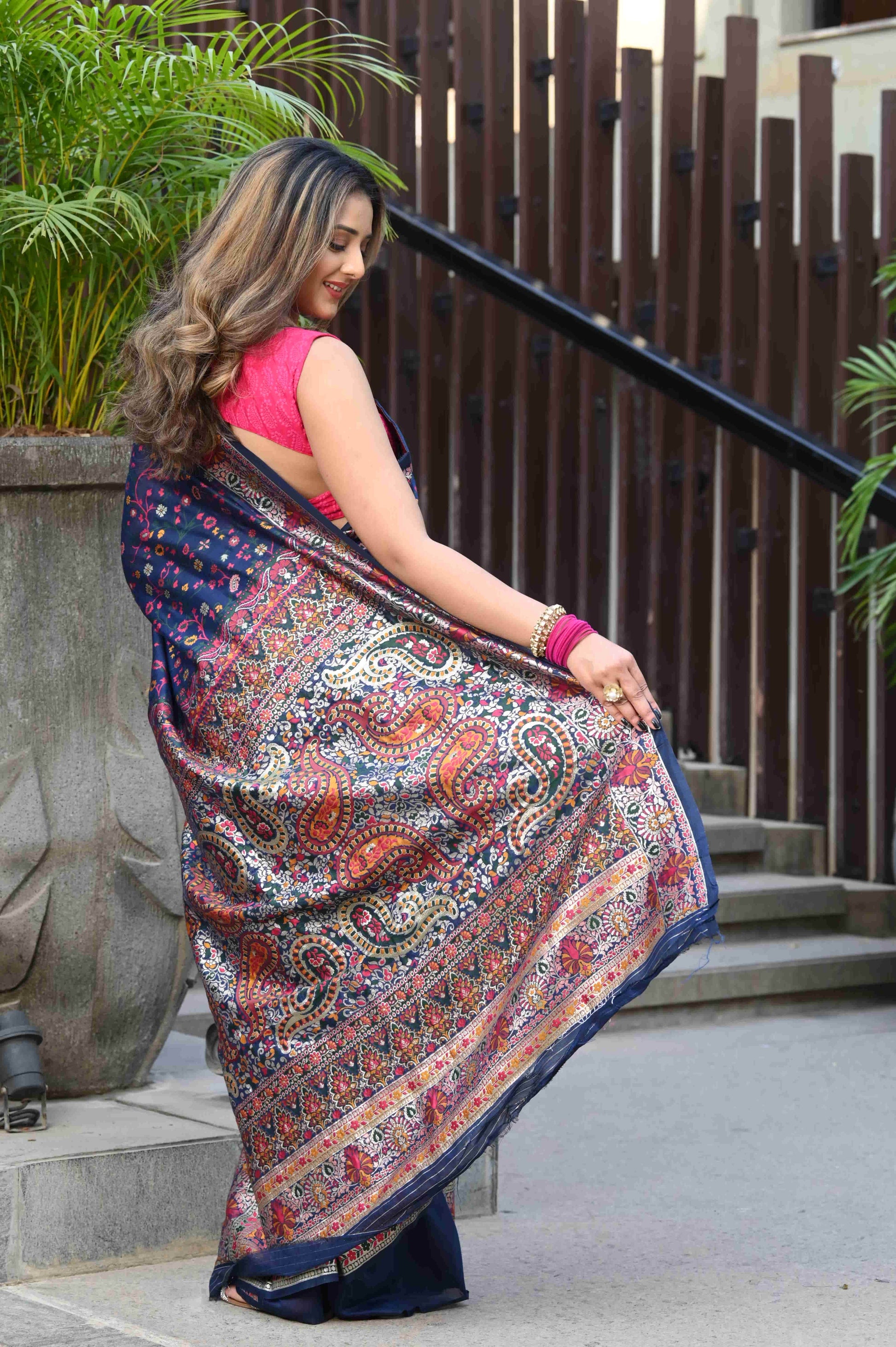 Dhiyona GR Women's Raaga Navy Blue Jamewar Kashmiri Soft Modal Silk Saree