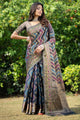 Dhiyona GR Women's Rangkat Lapis Lazuli Teal Leheriya Design Banarasi Organza Saree