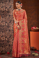 Dhiyona GR Women's Rashmika Tart Red Zari Woven Design Banarasi Organza Saree