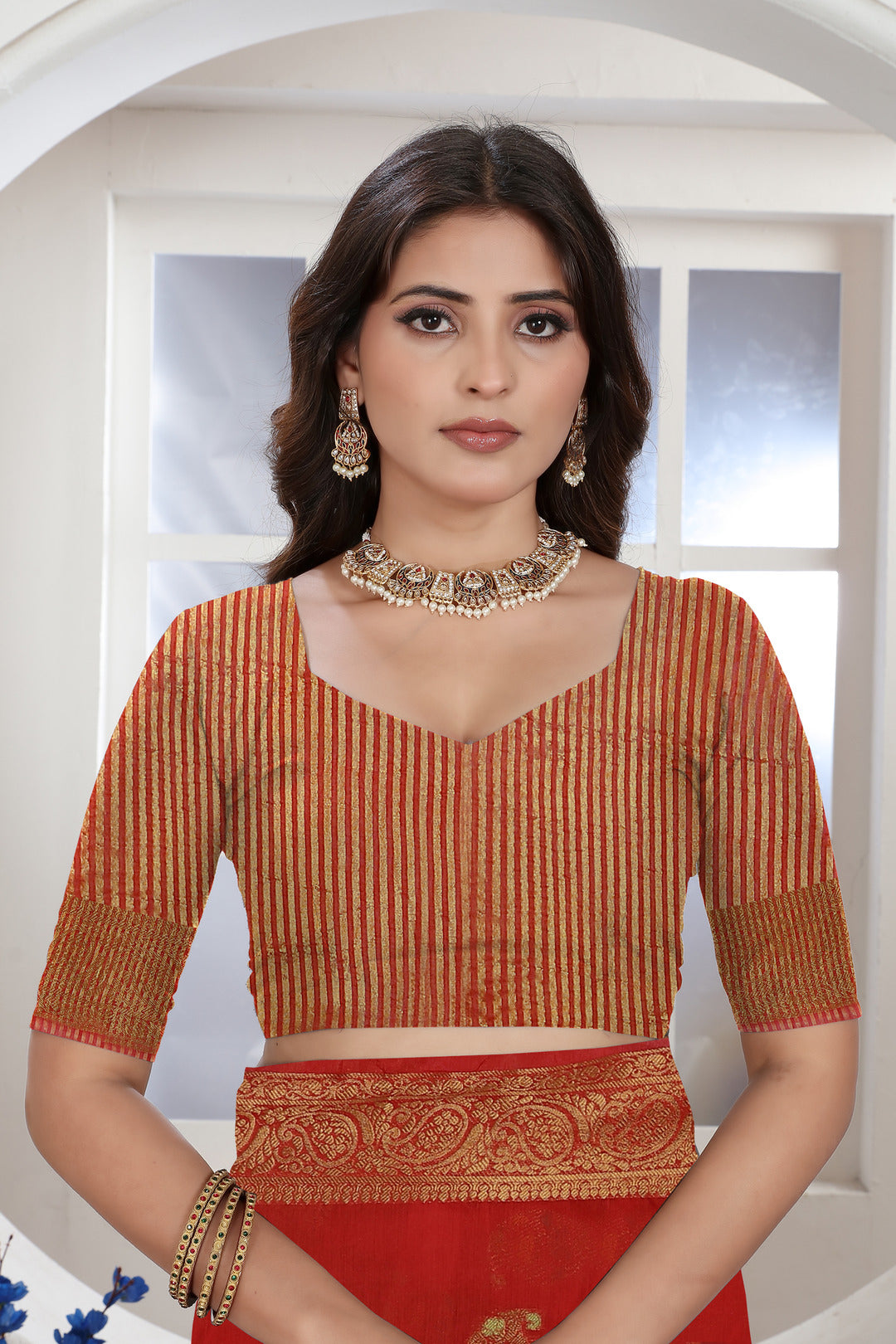 Dhiyona GR Women's Red Zari Woven Design Chanderi Cotton Saree