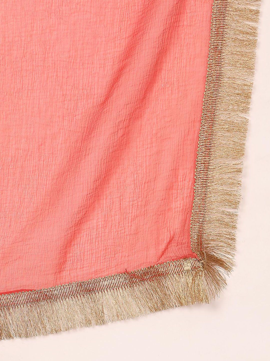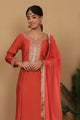 Rust and gold embroidered Kurta with Trousers with dupatta