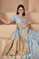 Dhiyona GR Women's Sargam Baby Blue Zari Woven Design Linen Saree