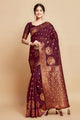Dhiyona GR Women's Sargam Burnt Burgundy Zari Woven Design Linen Saree