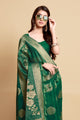 Dhiyona GR Women's Satrangi Leaf Green Zari Woven Design Linen Saree