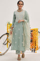 Dhiyona VA Women'sSea Green Floral Embroidered Thread Work Straight Kurta With Trousers & Dupatta