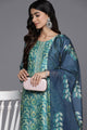 Dhiyona VA Women'sSea Green Floral Printed Hand work Kurta with Trousers & Dupatta