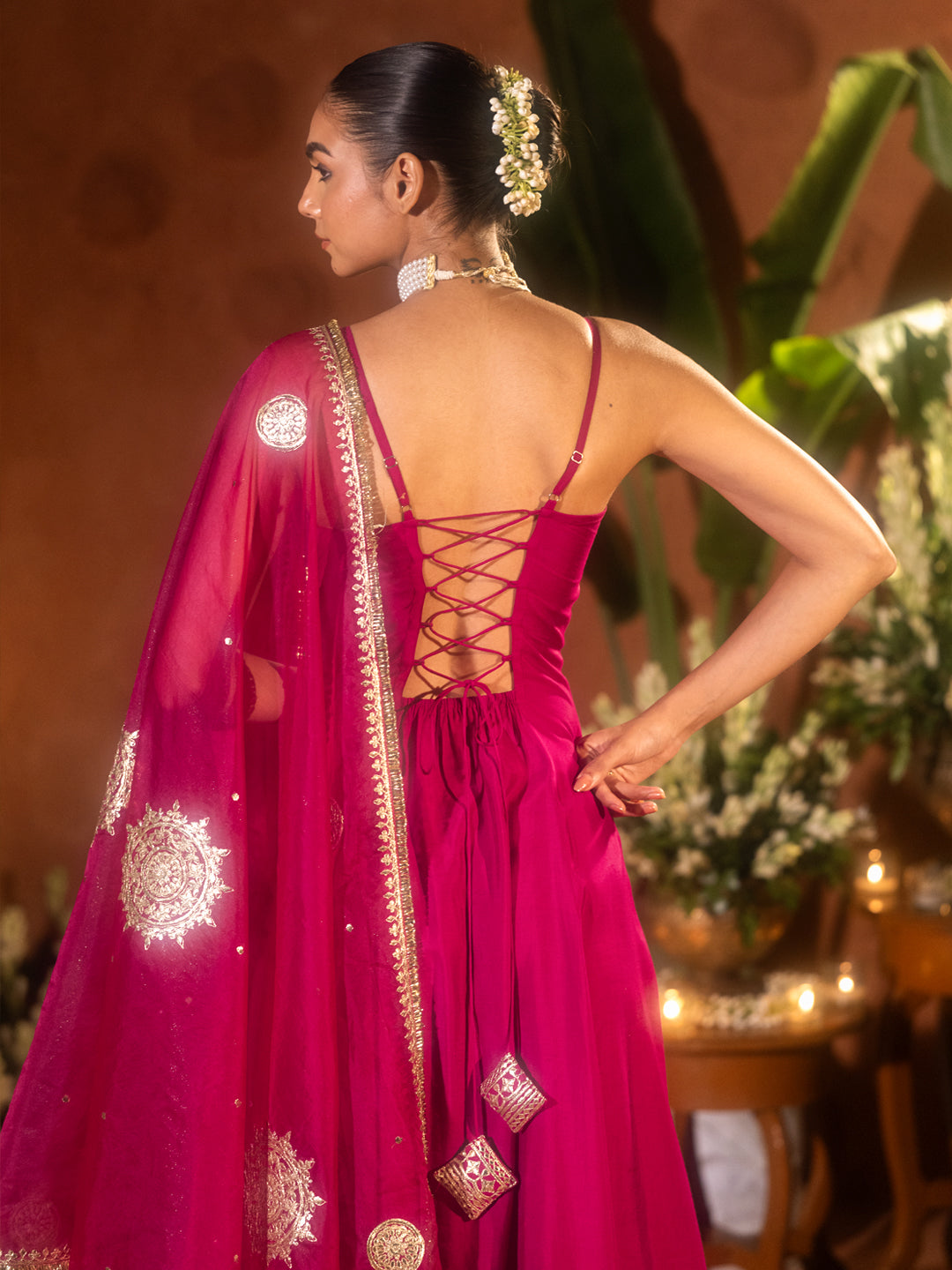 Dhiyona FL Women's Pink Viscose Chanderi Embroidered & Gota Patti Work Ethnic A-Line Kurta Set with Dupatta