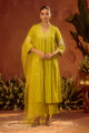 Dhiyona FL Women's Lime Green Viscose Chanderi Embroidered & Gota Patti Work Ethnic A-Line Kurta Set with Dupatta