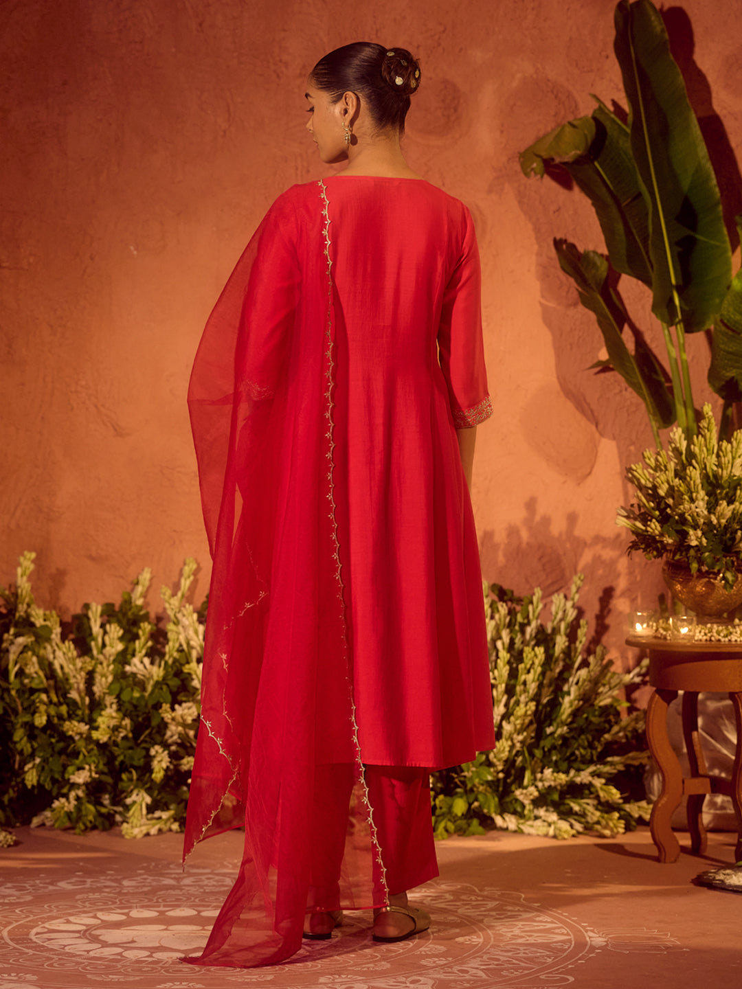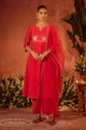 Dhiyona FL Women's Red Viscose Chanderi Embroidered Ethnic A-Line Kurta Set with Dupatta
