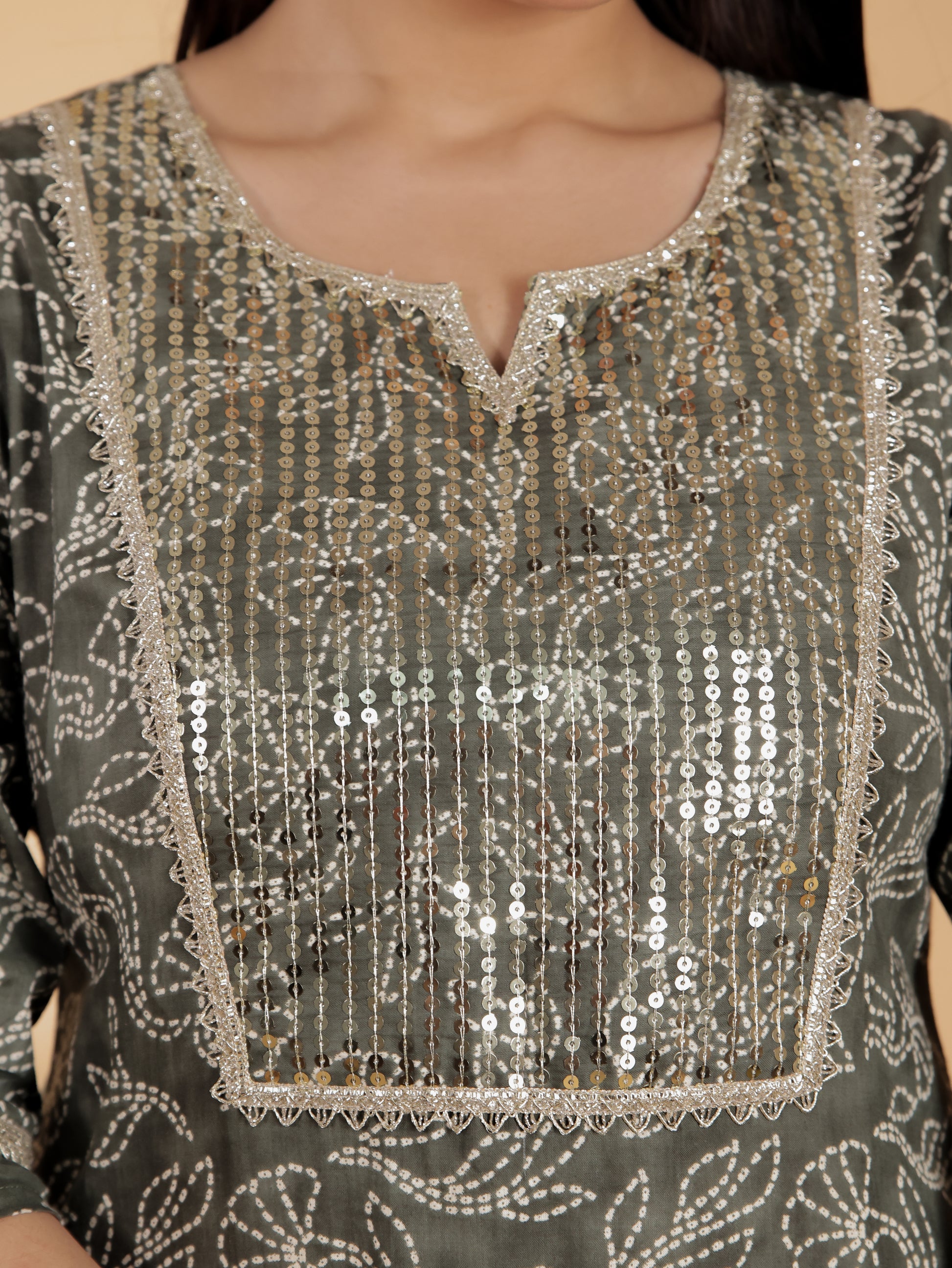 Color: Green||Fabric: Cotton||Type: Straight||Print: Bandhani