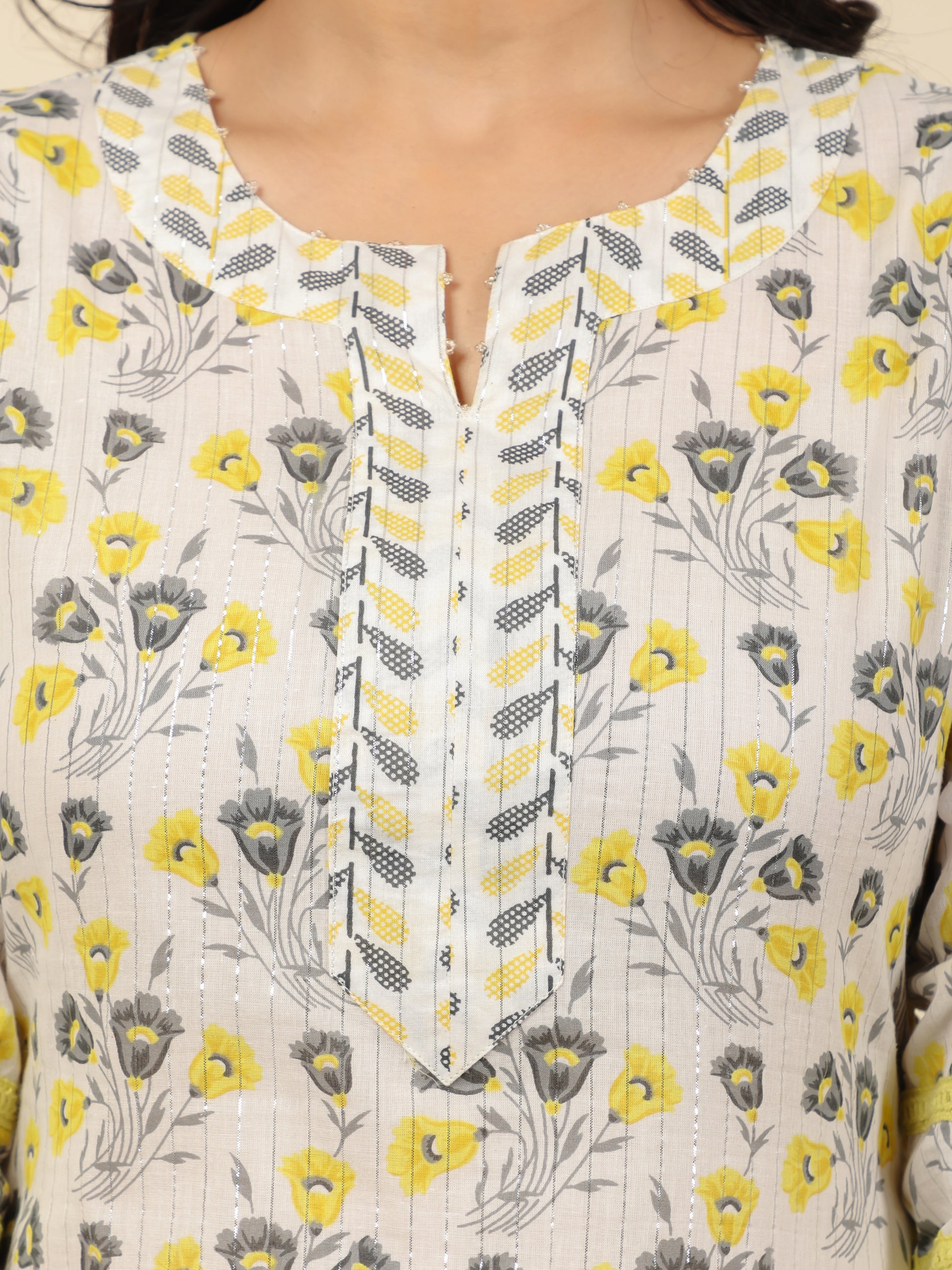 Color: Off White||Fabric: Cotton||Type: Straight||Print: Floral