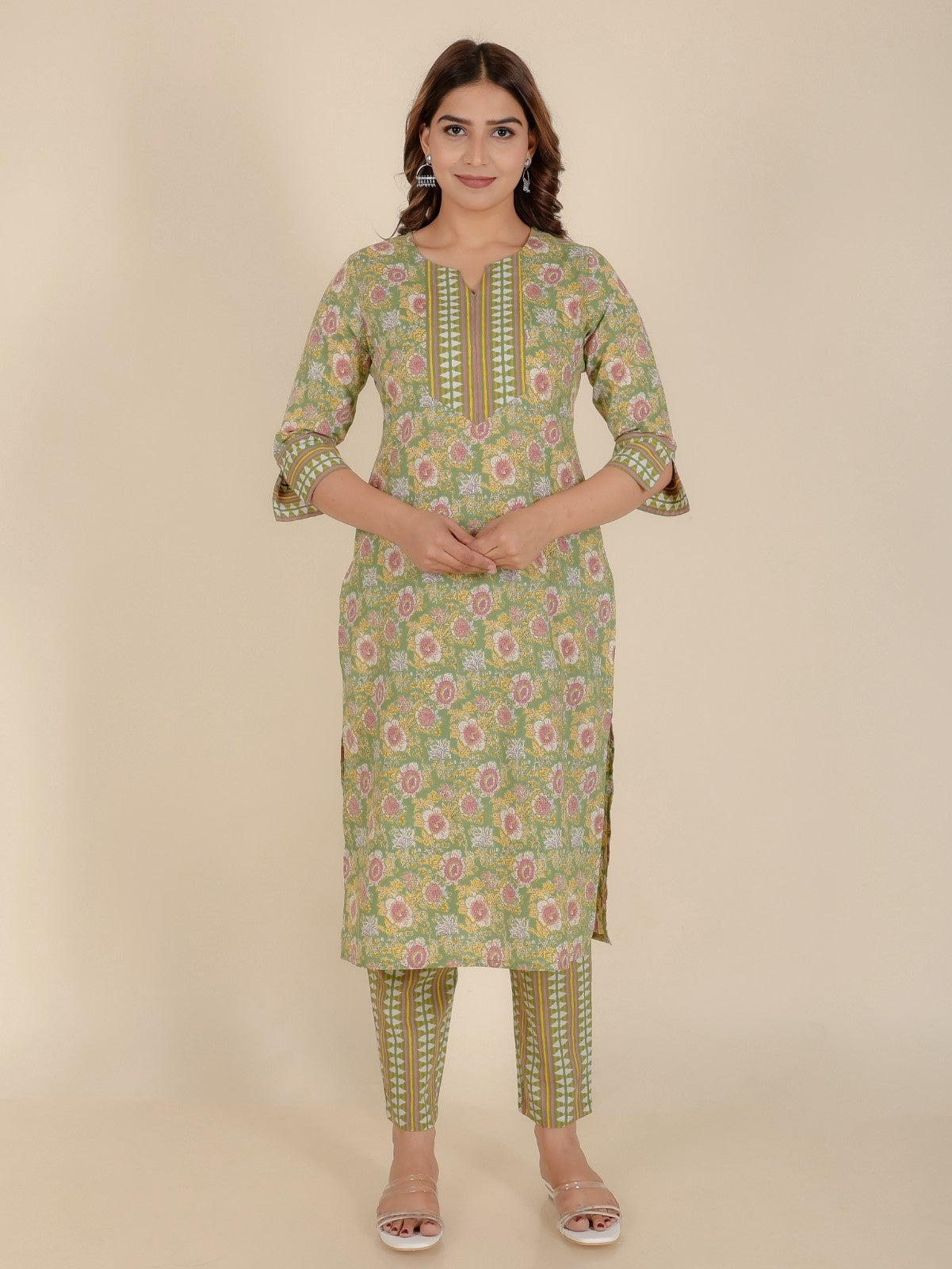 Straight Kurta Set for Women | Soft Cotton Kurta set for Ladies | Floral Print Women's Kurta Set | Women Kurta Set for Office or Casual Wear