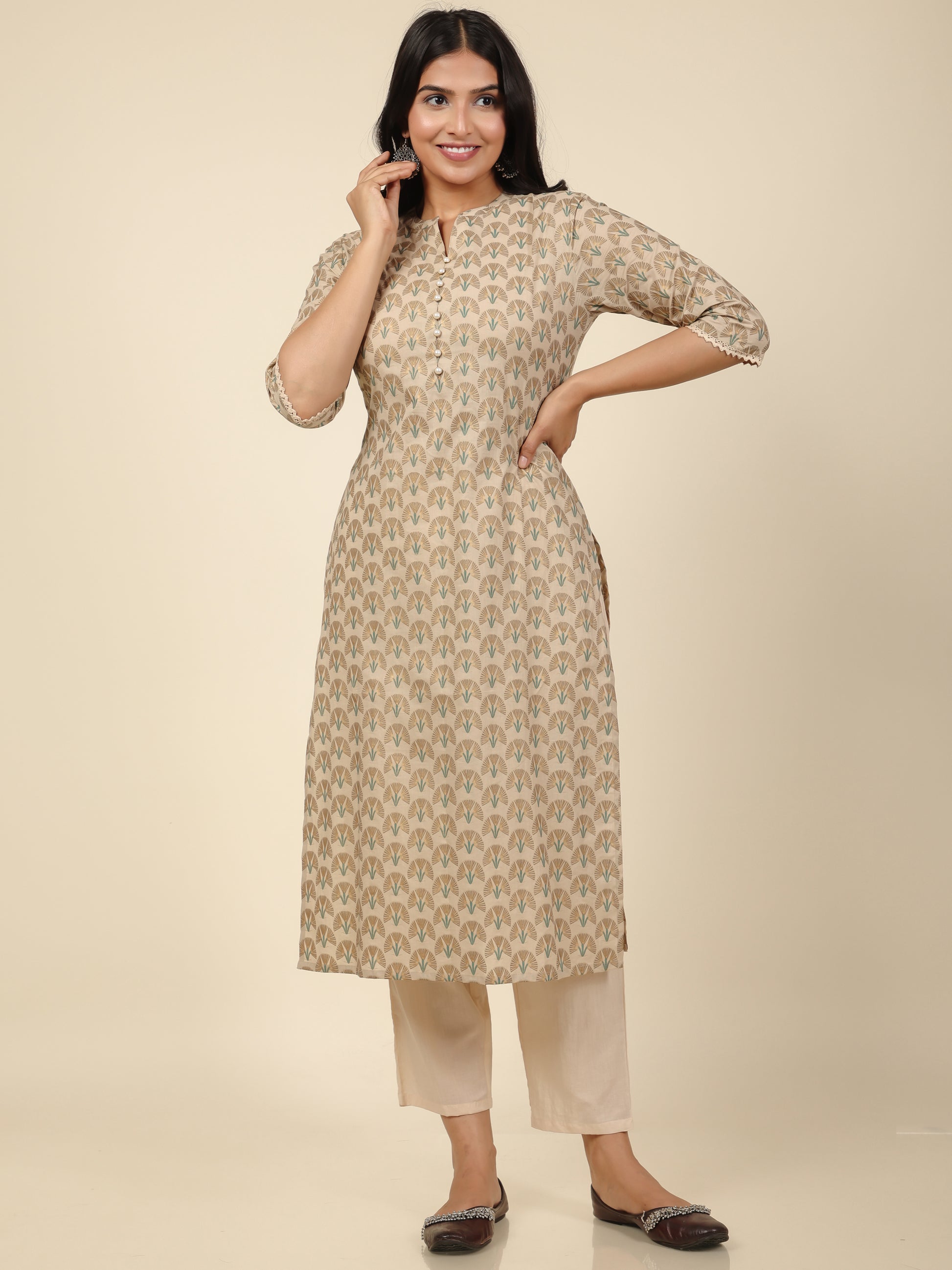 Straight Kurta Set for Women | Soft Cotton Kurta set for Ladies | Floral Print Women's Kurta Set | Women Kurta Set for Festival Wear