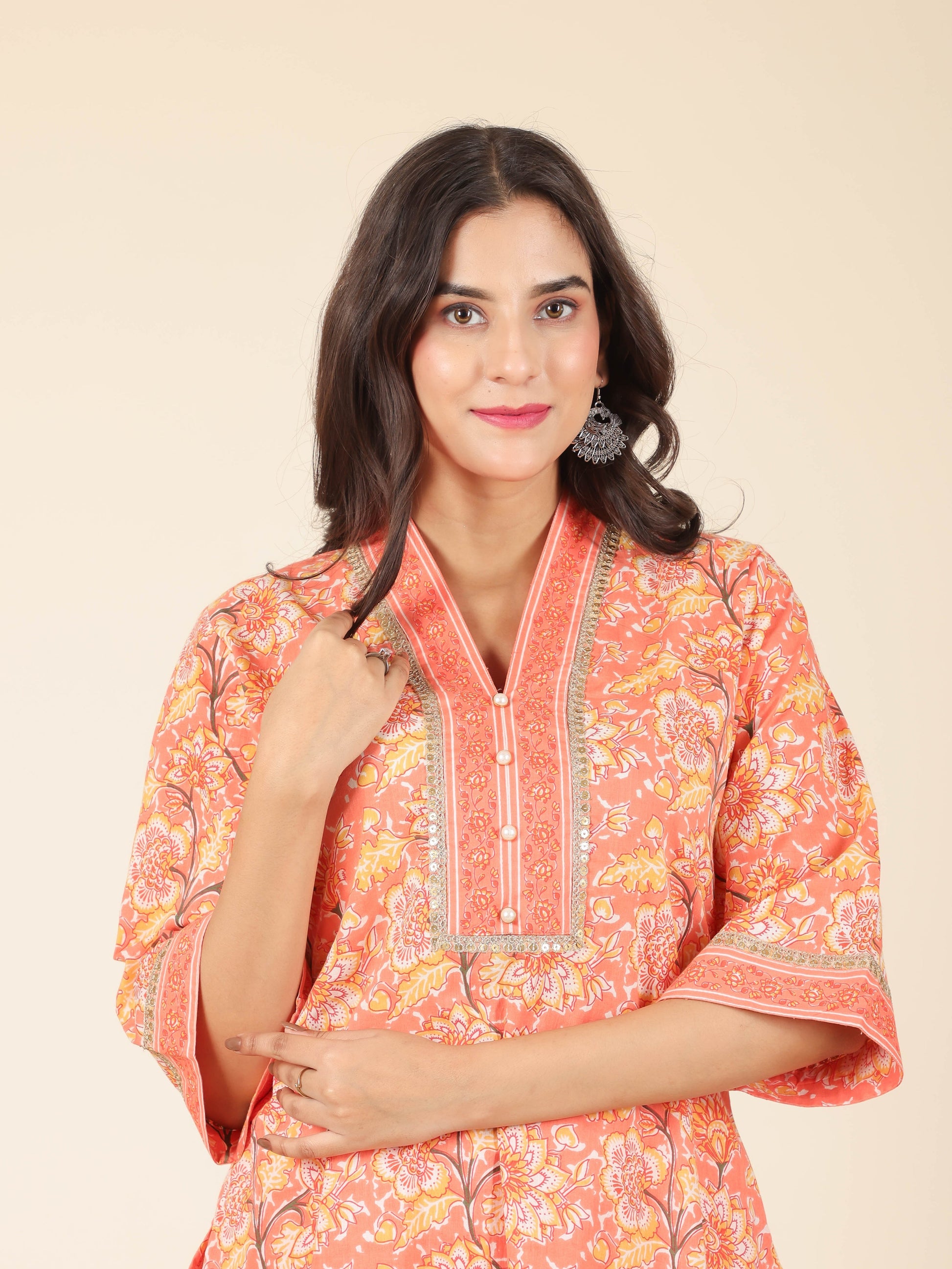 Color: Orange||Fabric: Cotton||Type: Straight||Print: Floral