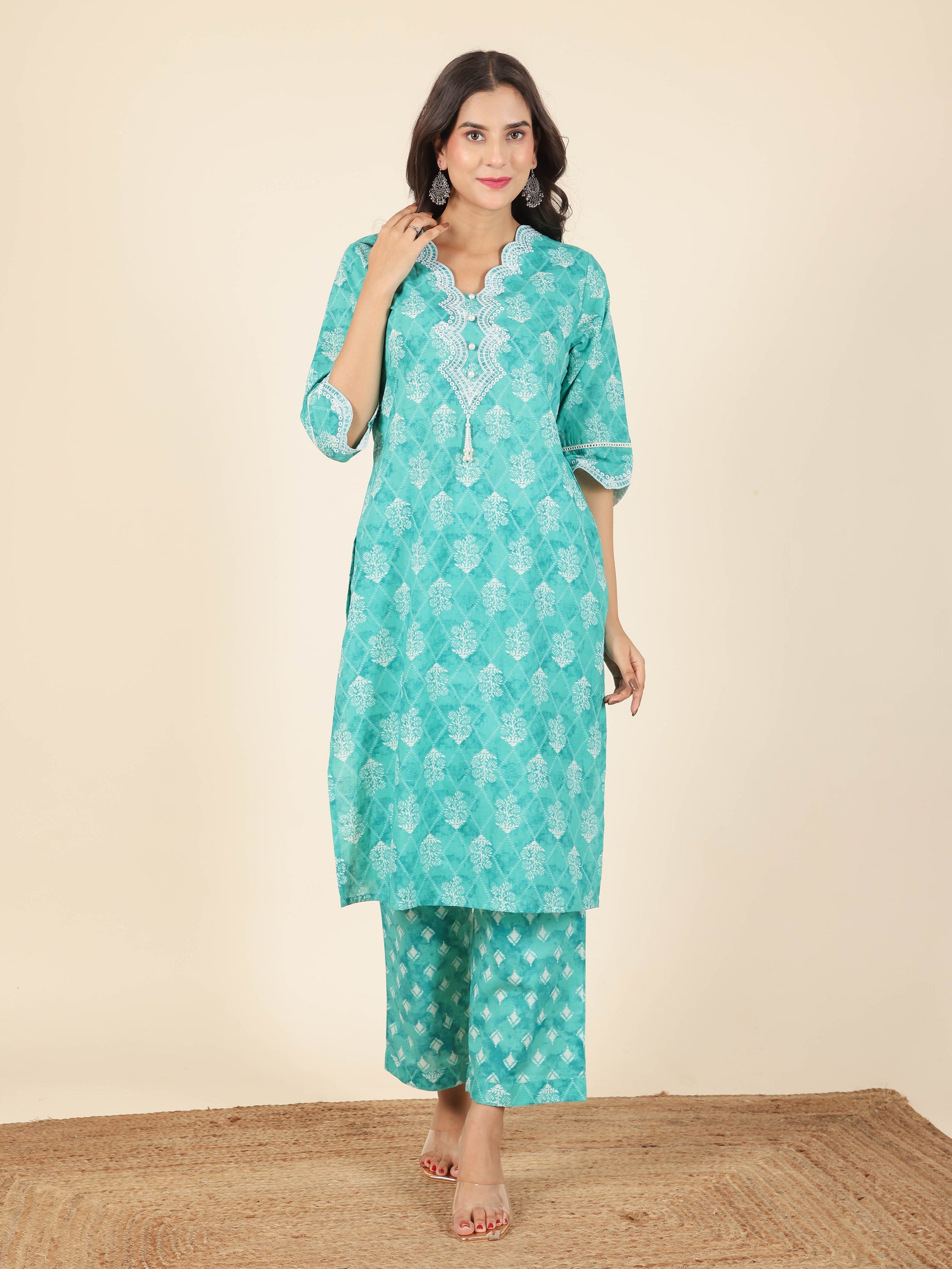 Straight Kurta Set for Women | Soft Cotton Kurta set for Ladies | Geometric Print Women's Kurta Set | Women Kurta Set for Office or Casual Wear
