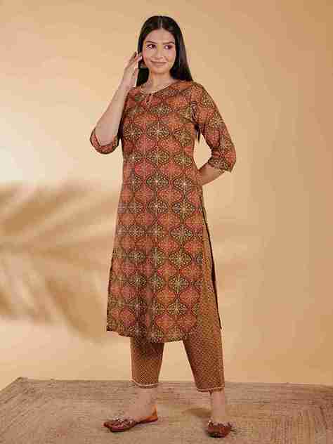 Straight Kurta for Women | Soft Cotton Kurta for Ladies | Geometric Print Women's Kurta | Women Kurta for Festival Wear