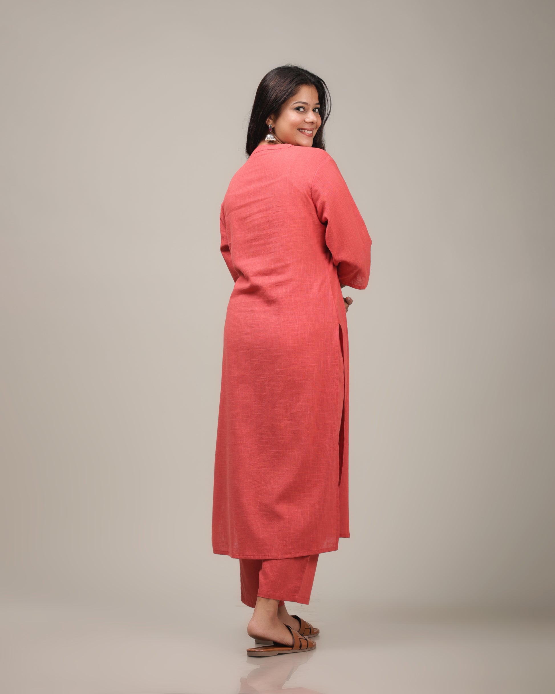 Styling Suggestion: Pair the kurta with simple stud earrings and a sleek watch for a polished office look. Opt for block heels or juttis for comfort. Keep makeup natural with soft blush and nude lipstick, and style your hair in a ponytail or loose waves for a refined yet effortless vibe.