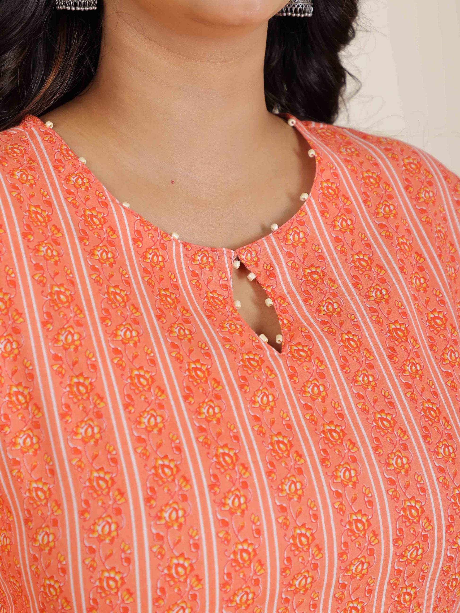 Color: Orange||Fabric: Cotton||Type: Straight||Print: Striped