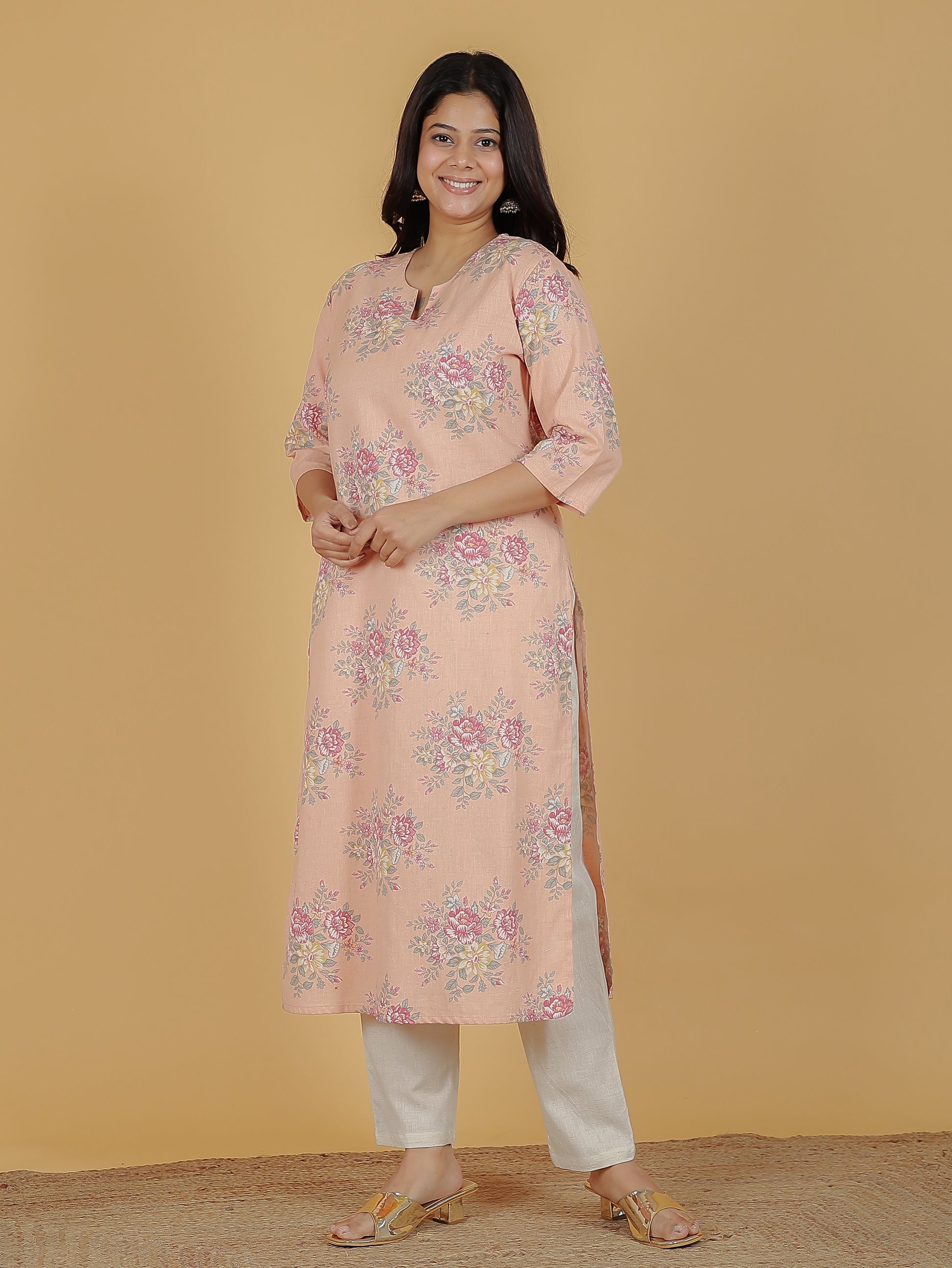 Straight Kurta Set for Women | Linen Cotton Kurta set for Ladies | Floral Print Women's Kurta Set | Women Kurta Set for Office or Casual Wear