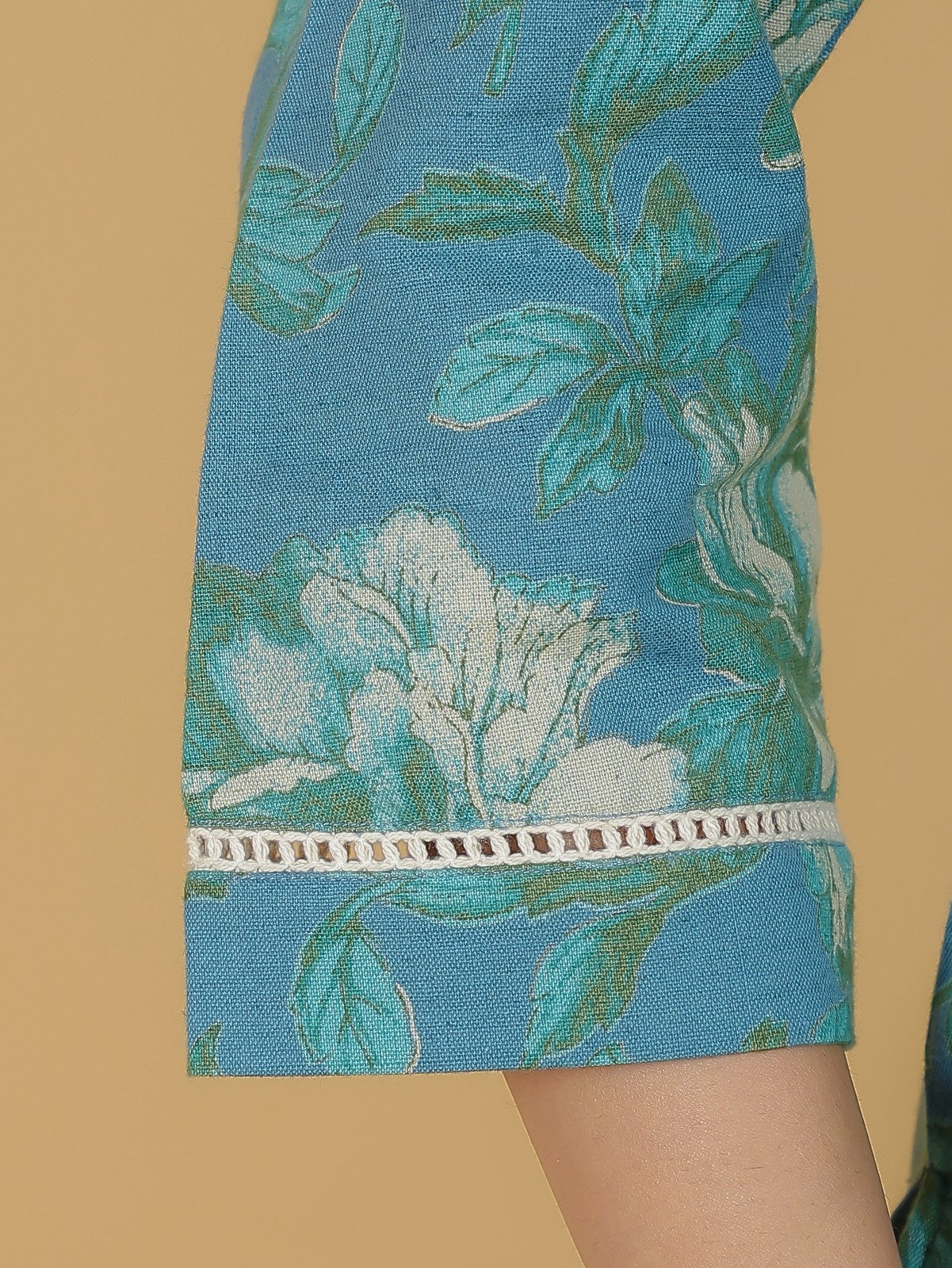 Color: Green||Fabric: Linen||Type: Straight||Print: Floral