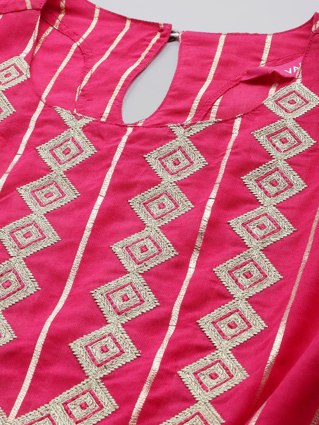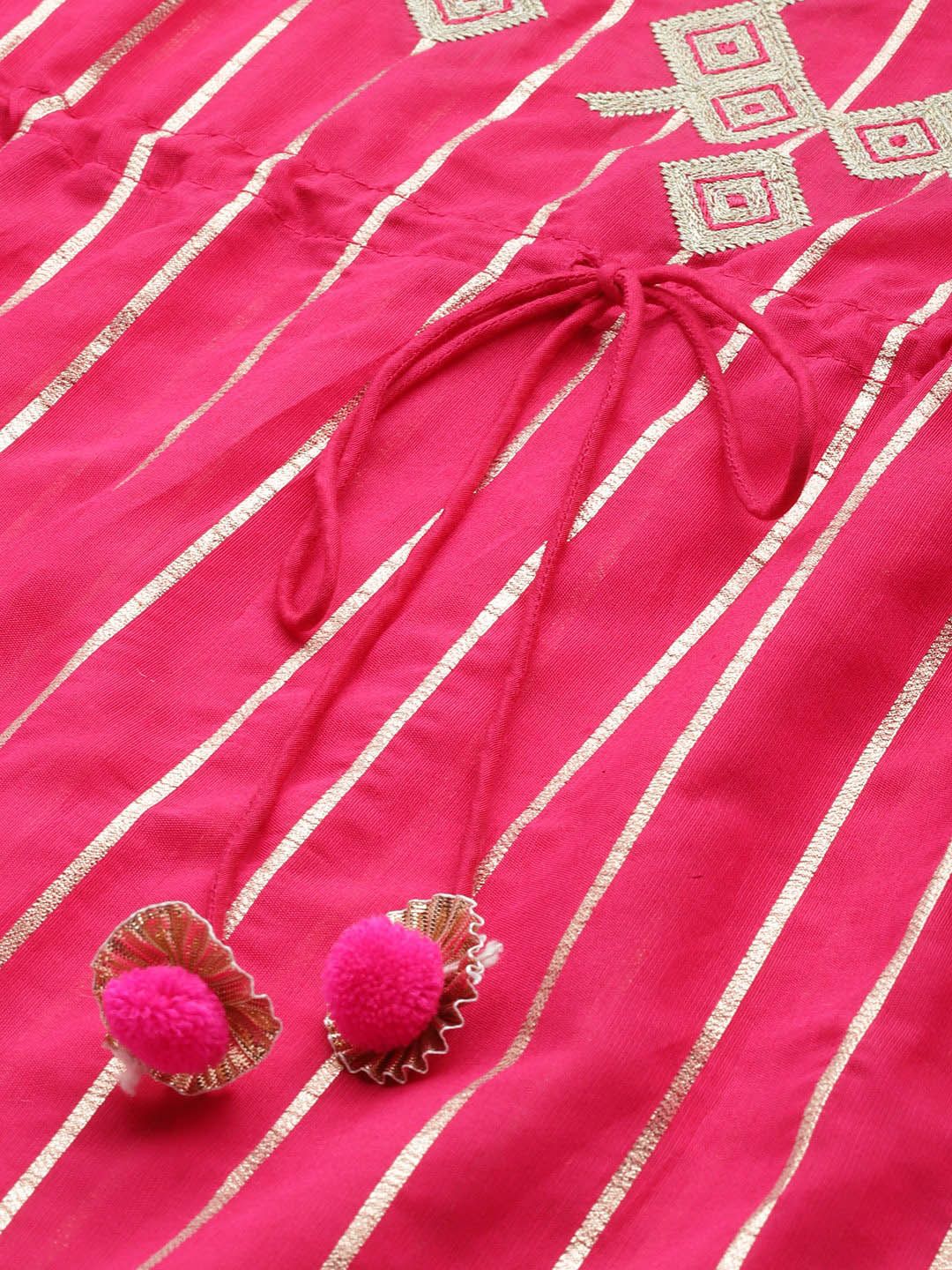 Dhiyona VA Women'sStriped Thread Work Chanderi Silk Kaftan Kurta with Trousers