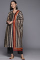 Dhiyona VA Women'sStriped V Neck Chanderi Cotton Straight Kurta & Trousers With Dupatta
