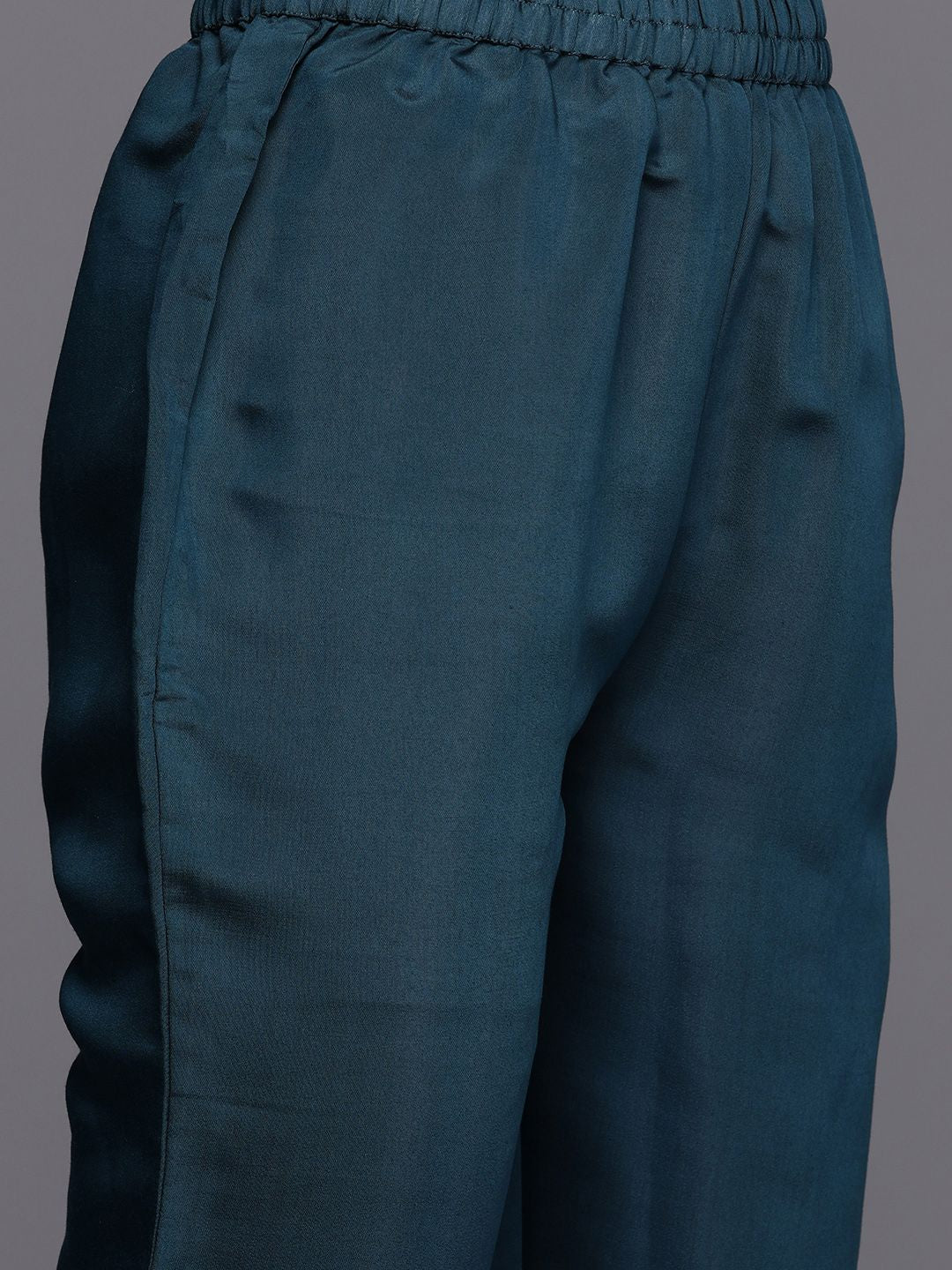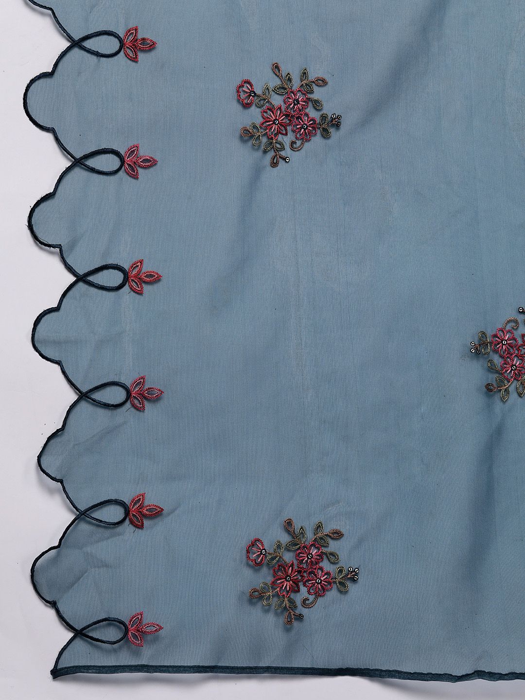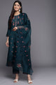 Dhiyona VA Women'sTeal Floral Embroidered Kurta with Trouser & Dupatta
