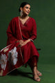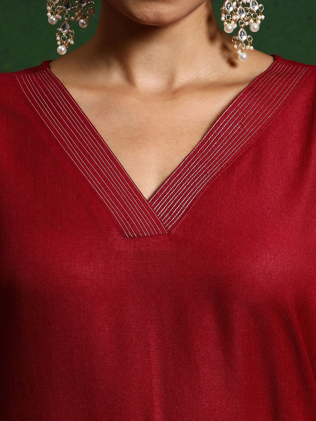 Dhiyona VA Women'sThread Work V-Neck Straight Kurta With Trousers And Dupatta