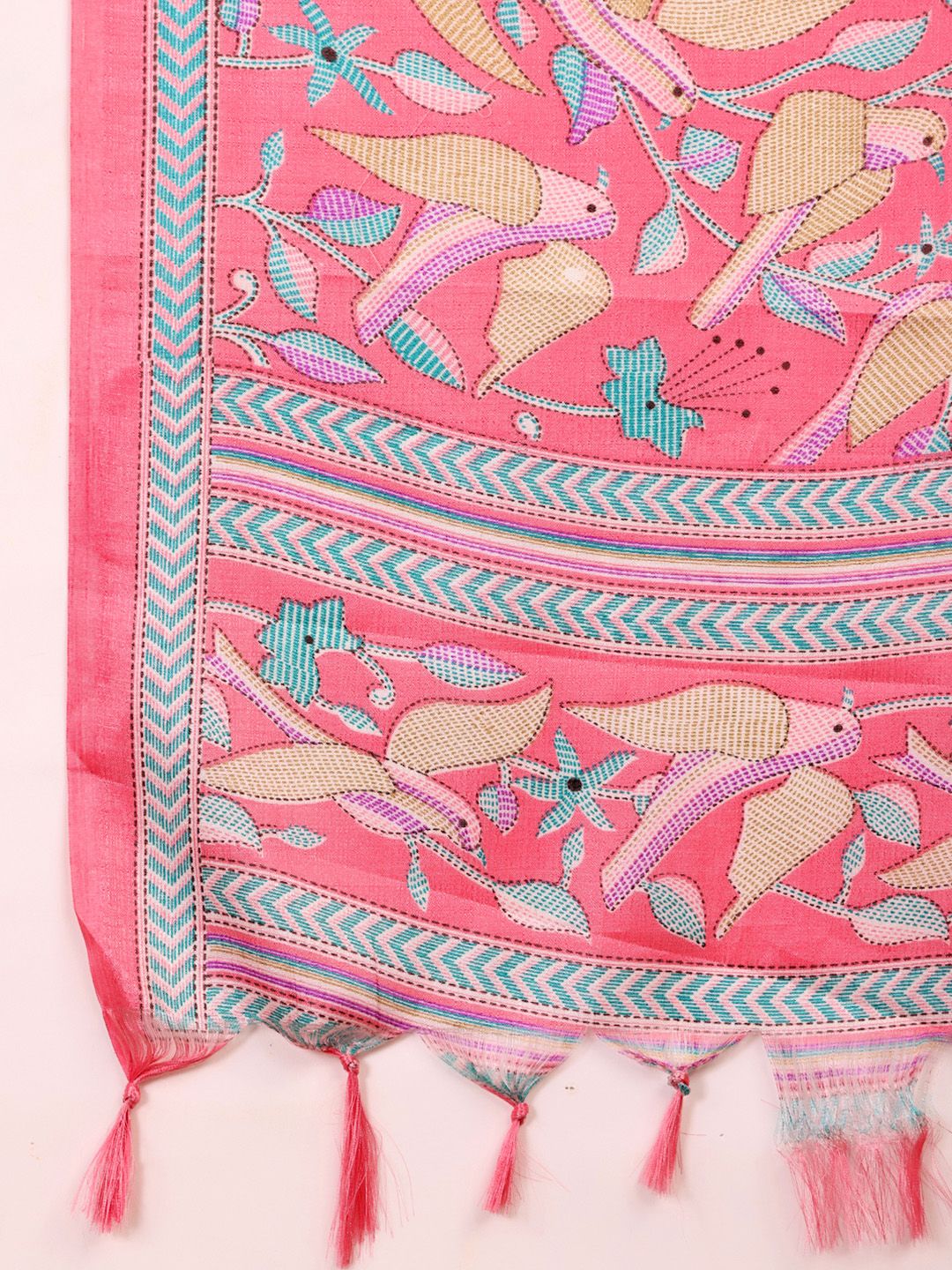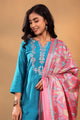 Dhiyona VA Women'sTurquoise Blue Floral Yoke Design Thread Work Kurta With Trouser & Dupatta