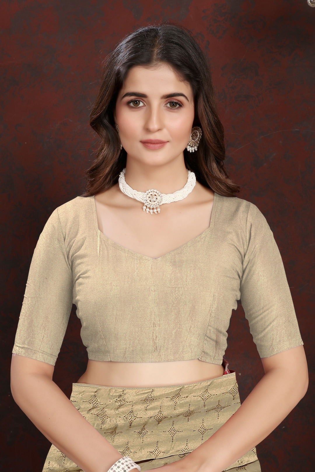 Be the cynosure of all eyes by wearing this gold satin silk saree which will be scene-stealing ethnic wear to shine in the spotlight.