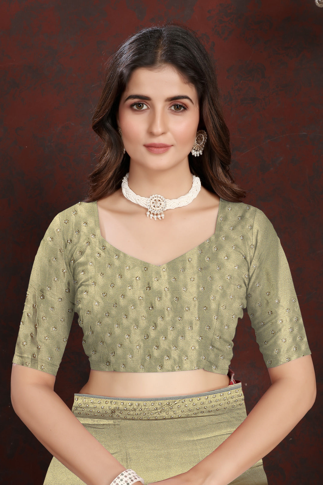 Be the cynosure of all eyes by wearing this green satin silk saree which will be scene-stealing ethnic wear to shine in the spotlight.