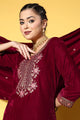 Dhiyona VA Women'sWinter Floral Zari Embroidered Velvet Kurta With Trousers & Dupatta.