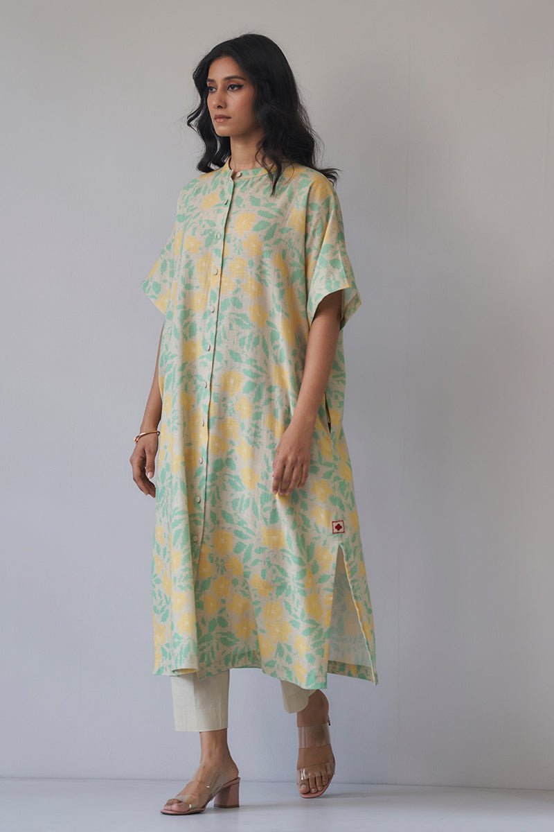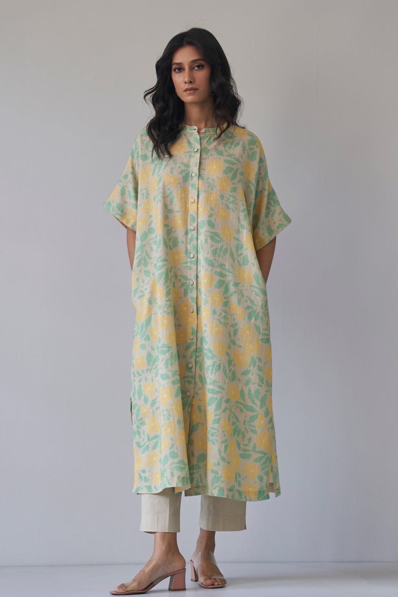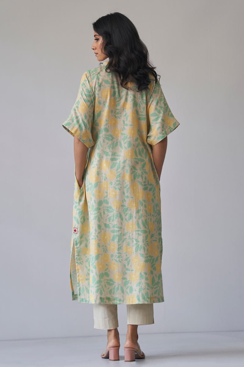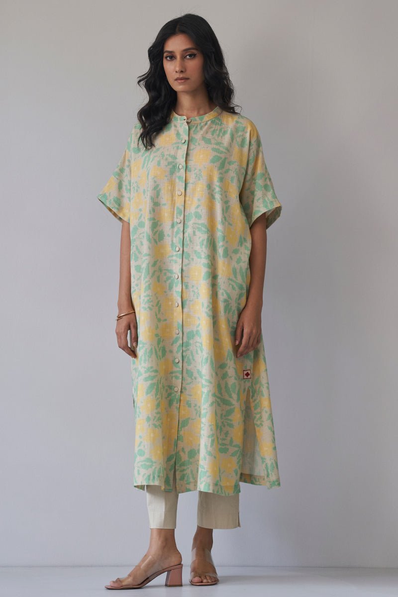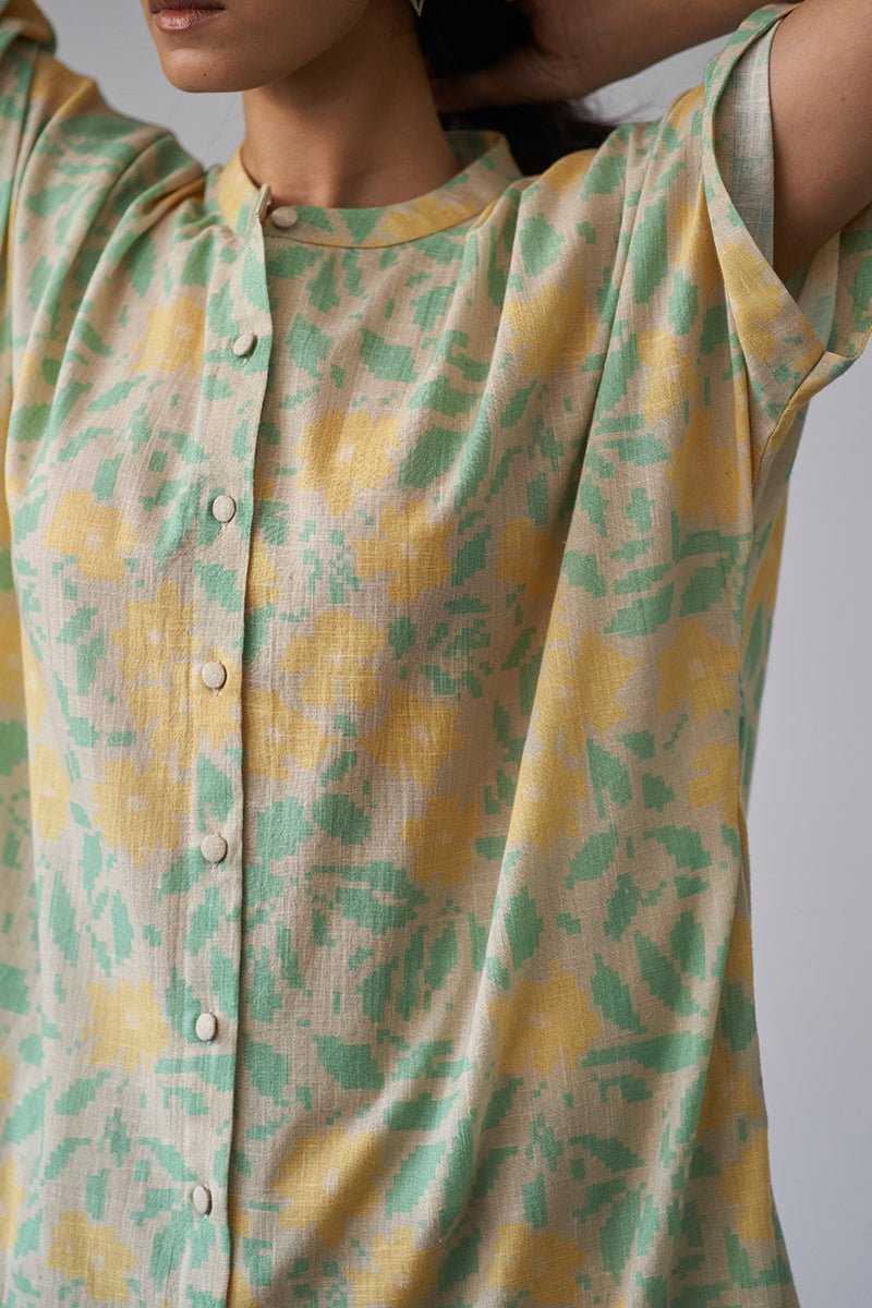 Women's Almond Milk and Green Cotton Linen Co-ord Set