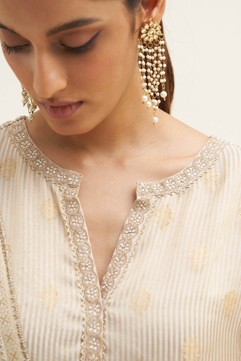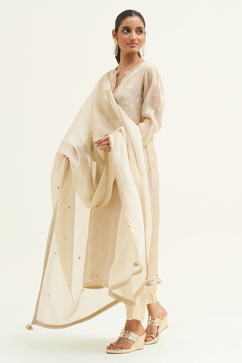 Women's Angora Beige and Golden Organza Jacquard Kurta Set