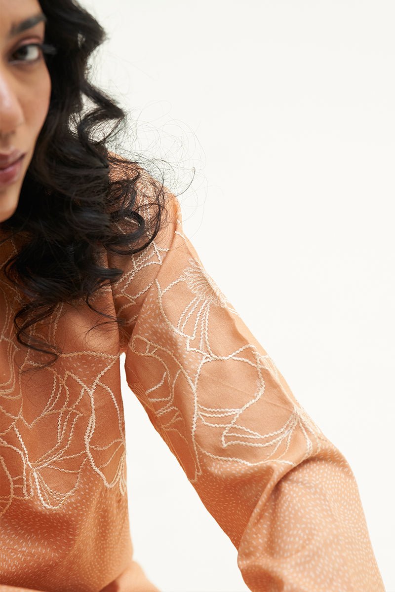 - Top- Digitally printed kurta enhanced with thread embroidery