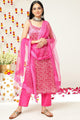 Pink & cream-coloured printed kurta & trousers with dupatta