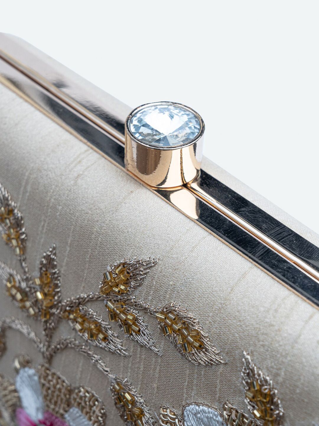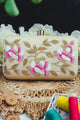 Dhiyona NR Women Beige & Pink Hand Embroidered Box Clutch
