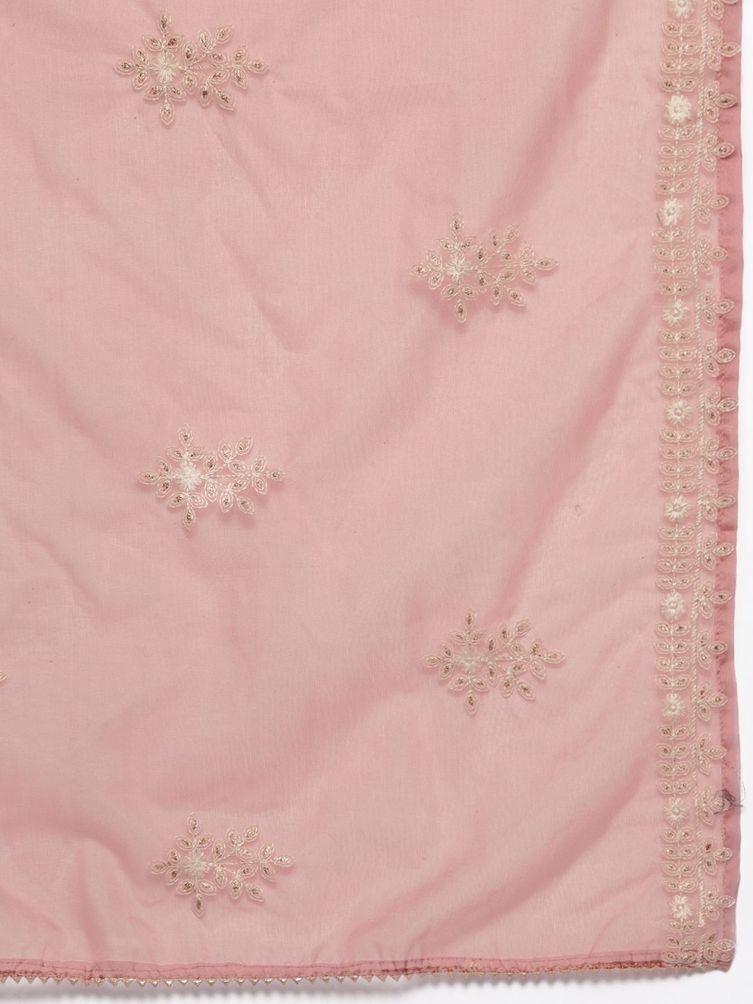 Dhiyona VA Women's Beige Thread Embroidered Pure Cotton Kurta with Trouser and Dupatta