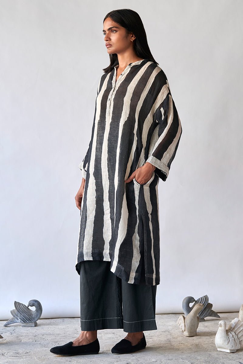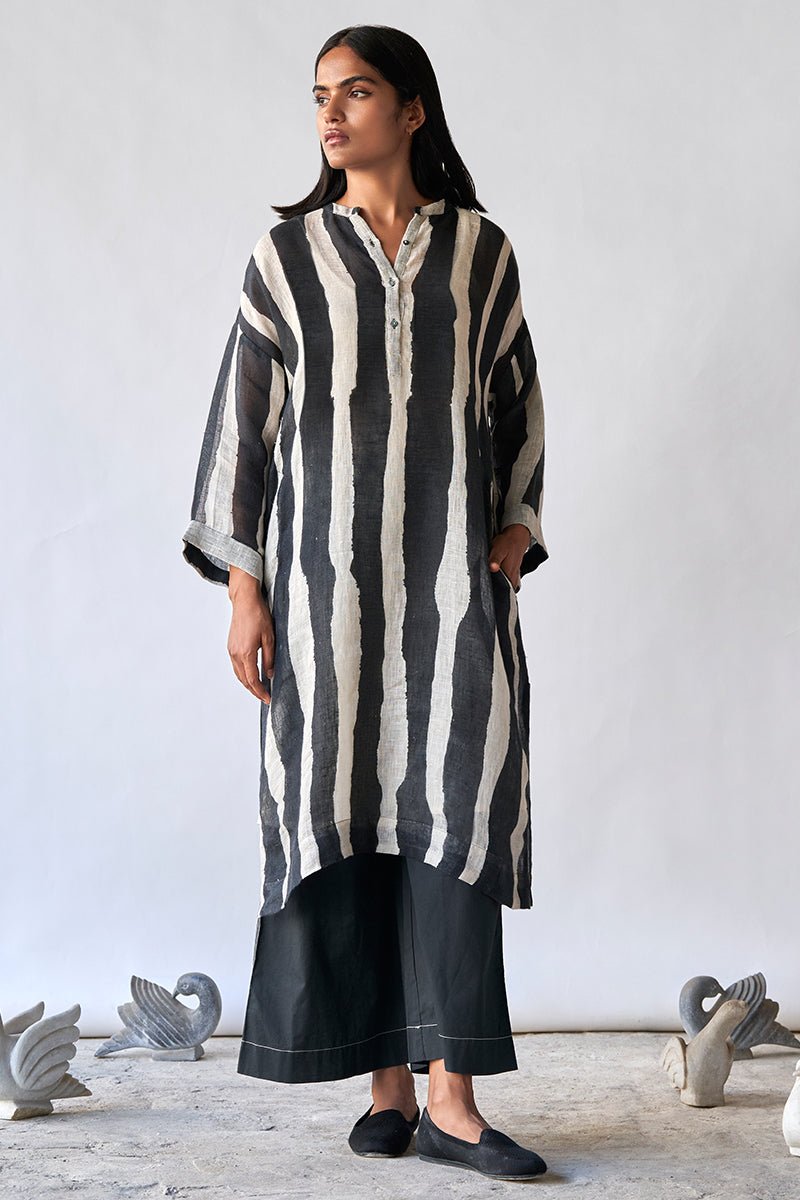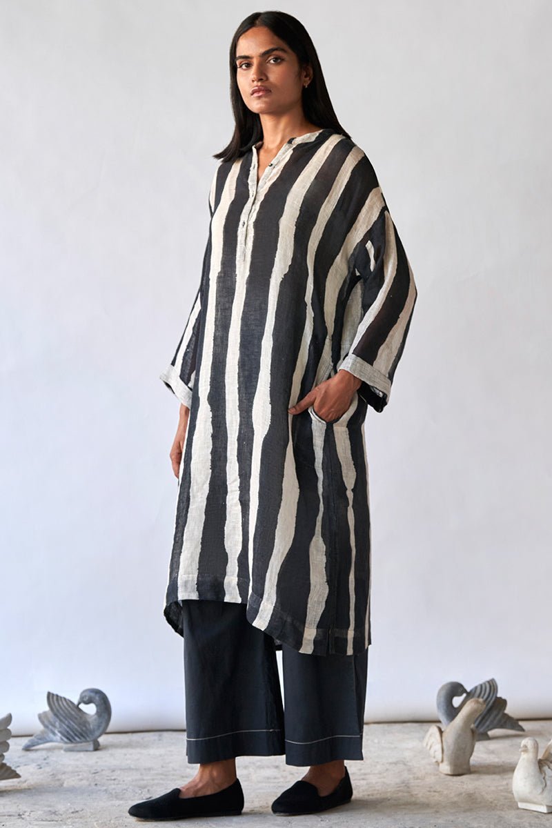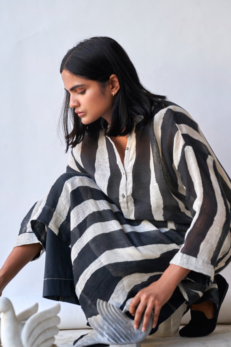 Women's Black and Tofu Stripe Linen Co-ord Set