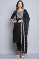Women's Black Embroidery silk Kurta, Pant And Dupatta Set